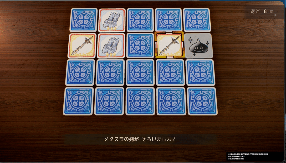 There’s no real strategy for Lucky Panel tbh. For the extreme difficulty version, you pretty much NEED to record your screen with your phone to keep track of the cards — your brain alone can’t handle it. This minigame tests your patience as a trophy hunter more than anything else. I used to love DQ casino minigames, the Sugoroku boards, the lotteries… but Lucky Panel? Nah fam. Never again.