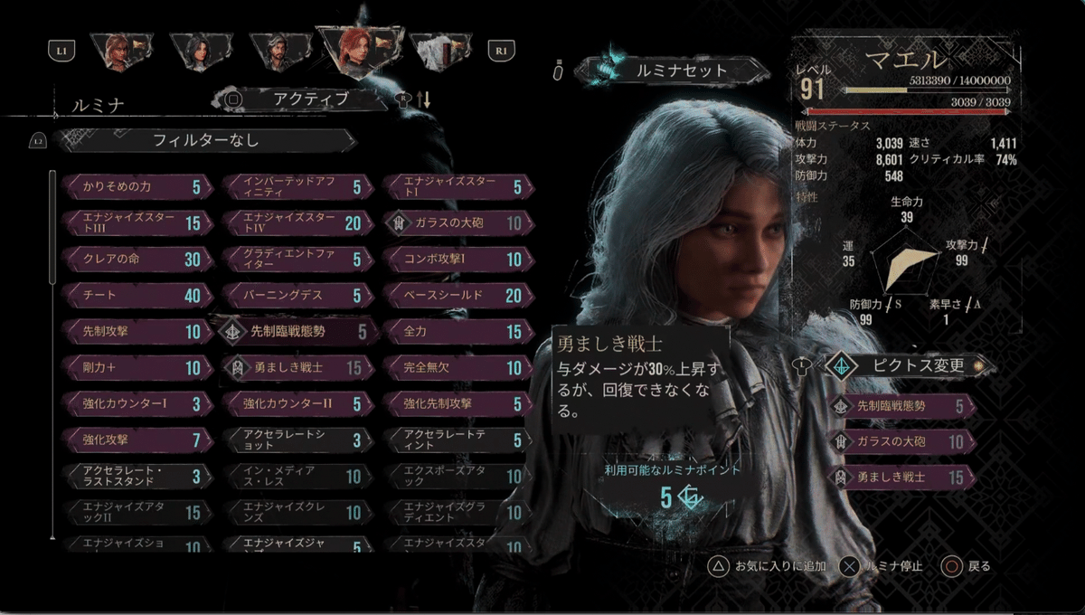Load up Mael with offensive Lumina/Pictos. Give everyone the “Cheat” ability for double actions.